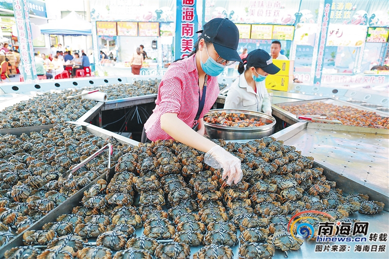 在第四屆海南美食文化節活動上,商家隨時補足大閘蟹供市民游客品嘗。 海南日報記者 李天平 攝