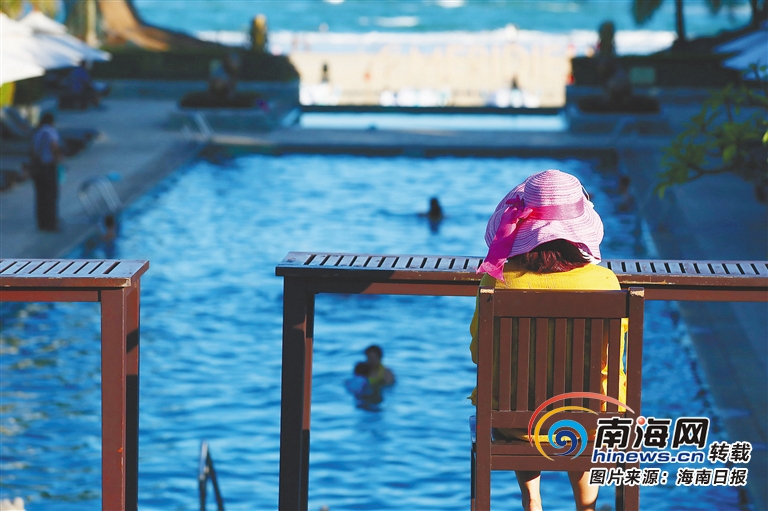 石梅灣的酒店外,一名游客望海聽濤。海南日報記者 張茂 攝