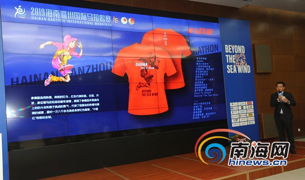 2019海南儋州國際馬拉松賽新聞發布會現場,介紹本屆比賽的參賽服裝。南海網記者陳望 攝