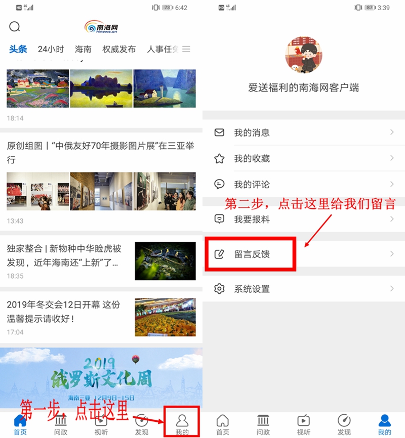 第二步:打開南海網客戶端,點擊右上角,進入留言反饋頁面填寫:“我要夜市抵用券+姓名+電話”,并將朋友圈分享截圖上傳,提交后即可成功參與活動!