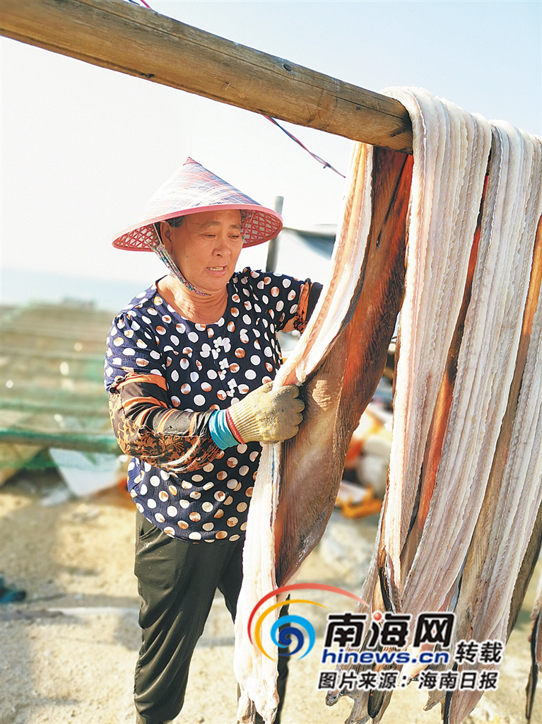 漁民晾曬鰻魚。海南日報記者 于偉慧 攝