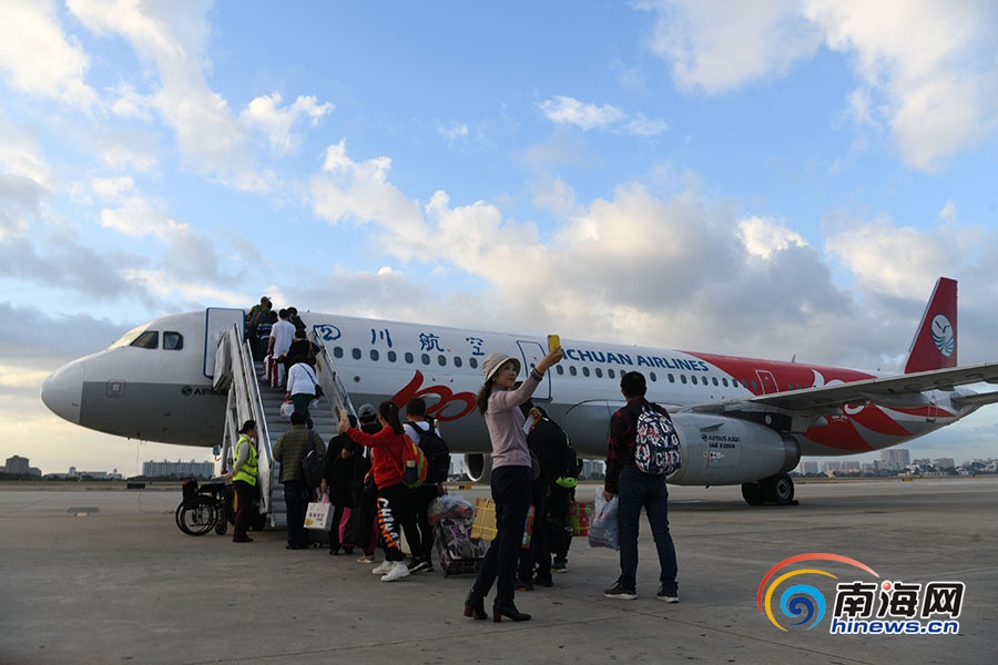 12月23日,旅客在三亞鳳凰國際機場登機前往韓國清州。南海網記者 沙曉峰攝