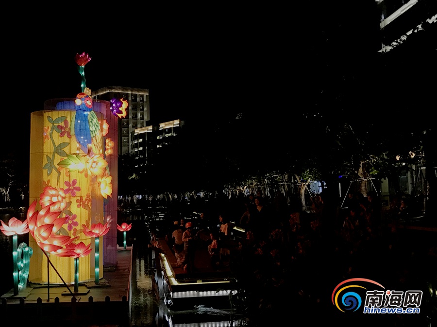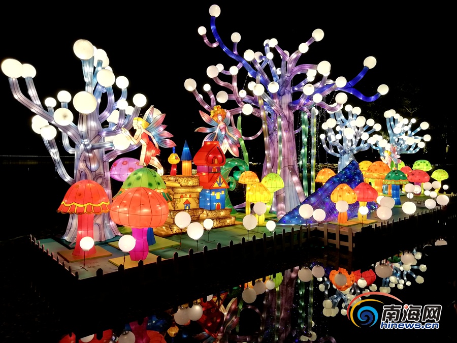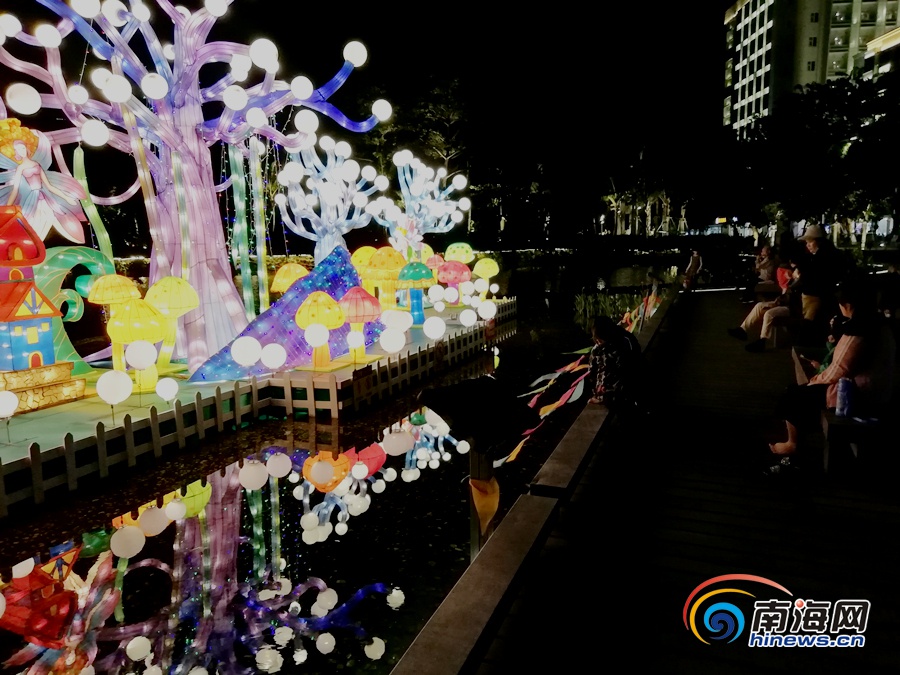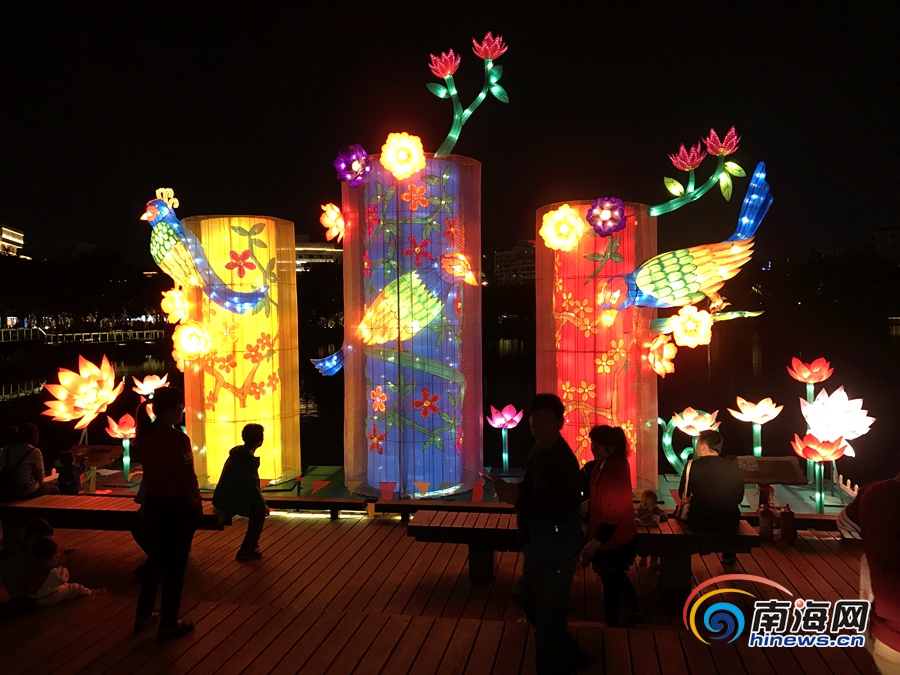 海口人民公園東湖的主題彩燈。南海網(wǎng)記者陳望 攝