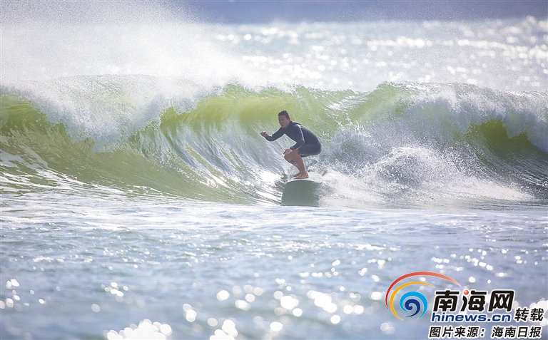 在日月灣馳騁浪尖的“浪人”。海南日?qǐng)?bào)記者 袁琛 攝