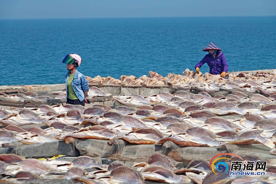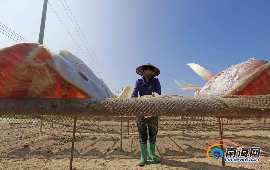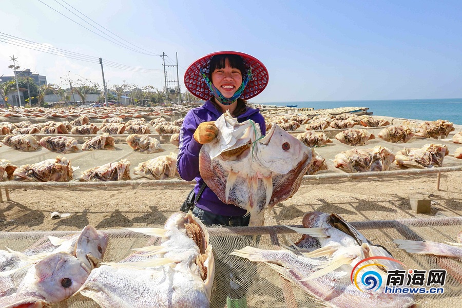 南海網、南海網客戶端儋州1月8日消息(海報集團全媒體中心記者陳元才)近日,在儋州市海頭鎮港口居委會,漁民們忙著晾曬紅魚干。時下正是儋州紅魚生產銷售的旺季,前來訂購帶魚、紅魚等海產品的省內外客戶絡繹不絕。