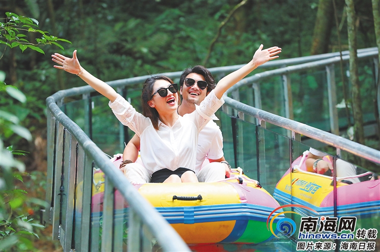 海南日報記者了解到,該高空漂流項目全長2020米,落差約百丈,設(shè)有4處360度的雙層環(huán)形盤旋、15處S形彎道,和一處9D恐龍主題聲光電秀,透明無邊的全視野設(shè)計,不僅可以讓游客體驗到高空呼嘯而過的快感,還能換一種角度欣賞到熱帶雨林的鬼斧神工之美。