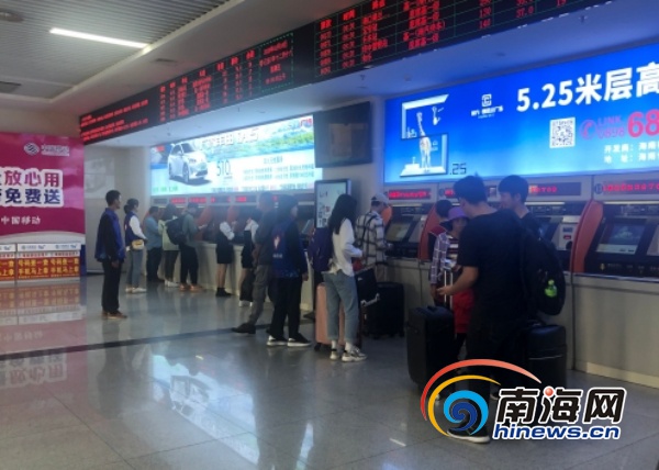 旅客排隊在自助售票機上購買汽車票。南海網記者 周靜泊 攝