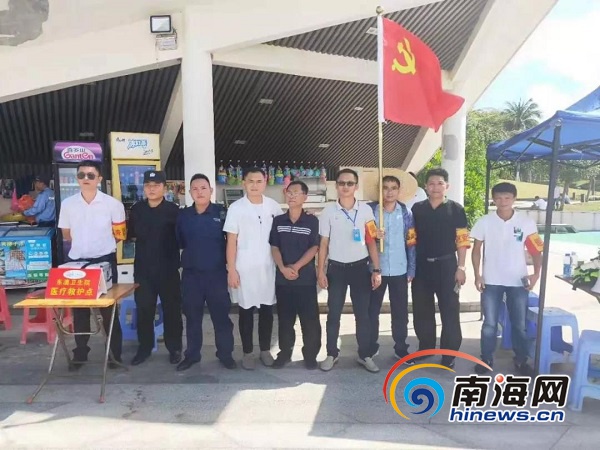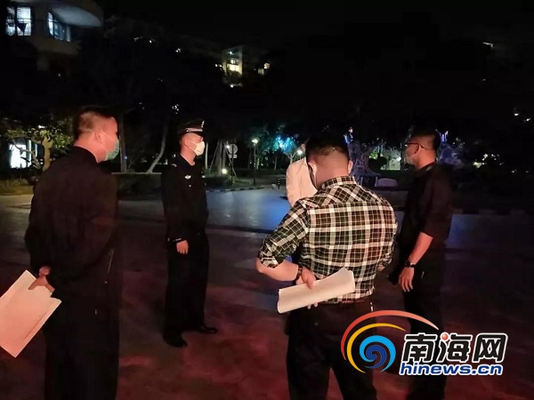 右一為翁書波和同事們在加班巡查。東澳鎮黨政辦供圖