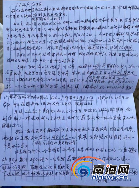方先生為美蘭區(qū)工作人員寫(xiě)的感謝信。通訊員供圖