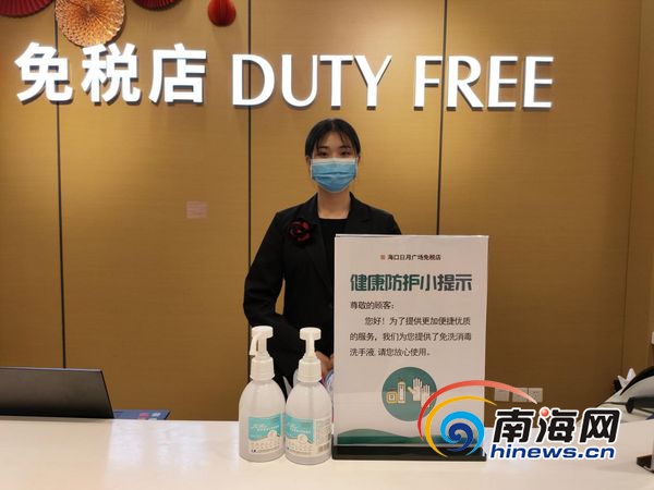 免稅店提供免洗消毒洗手液供客人使用。免稅店供圖