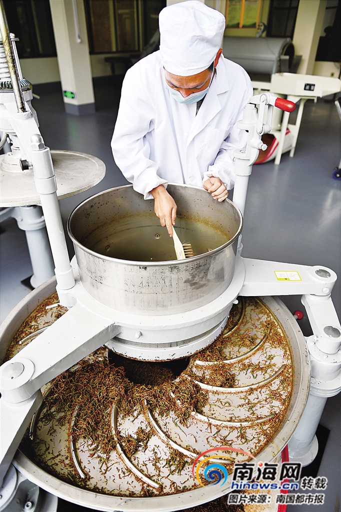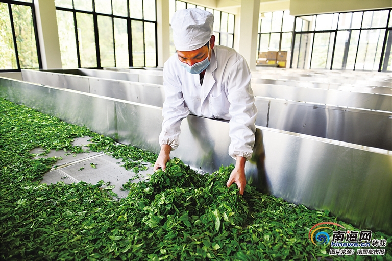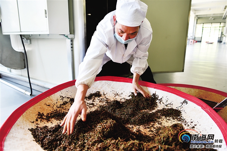 常去茶園看茶采茶,記者眼前的王雄青曬得黝黑,制茶時戴著口罩,指甲修剪得非常干凈,足以看出他的用心。今年43歲的王雄青是黎族人,家里世代制茶,他制茶的工藝也是跟爸媽學來的,近年來又跟著來自中國農業科學院茶葉研究所的制茶專家進一步學習,“學做茶越做越喜歡,考驗的是一個人的耐心和觀察力。”王雄青說。