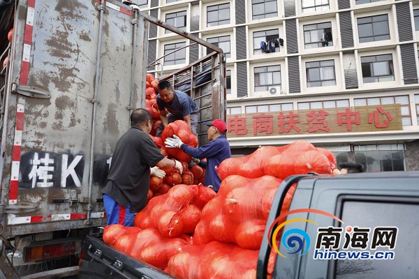 目前,在直播現(xiàn)場,愛心車隊的隊員正在將南瓜進(jìn)行裝車配送。南海網(wǎng)記者李昊攝