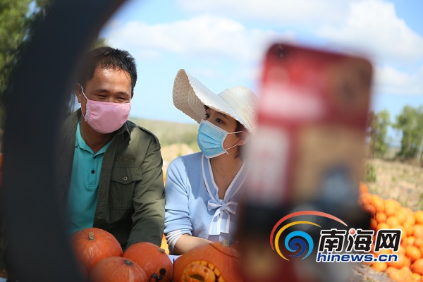 直播現(xiàn)場,南瓜種植戶麥壯苗一一為網(wǎng)友介紹南瓜的品種和食用價值及方法等,直播現(xiàn)場互動趣味滿滿。南海網(wǎng)記者莫光法攝