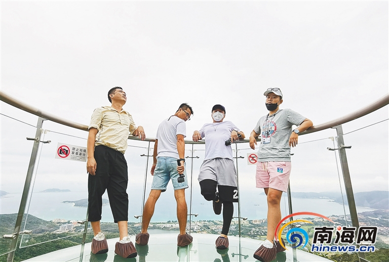 “超燃荷爾蒙”直播小分隊在亞龍灣全海景玻璃棧道。