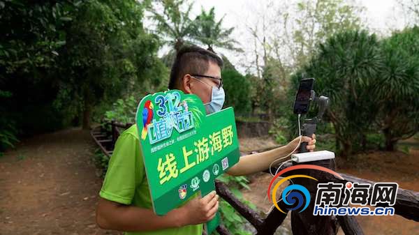 植樹節當天,海南熱帶野生動植物園的工作人員直播游園。景區供圖