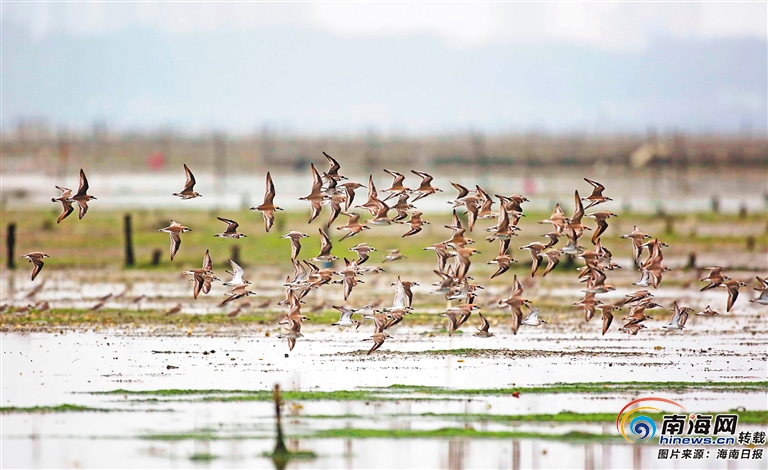 3月21日,在儋州市儋州灣,成群的鸻鷸類候鳥正展翅飛翔。近年來,儋州市加大儋州灣生態環境保護與修復,生態環境質量持續向好,吸引不少鳥類來這里“安家落戶”。海南日報記者 陳元才 攝