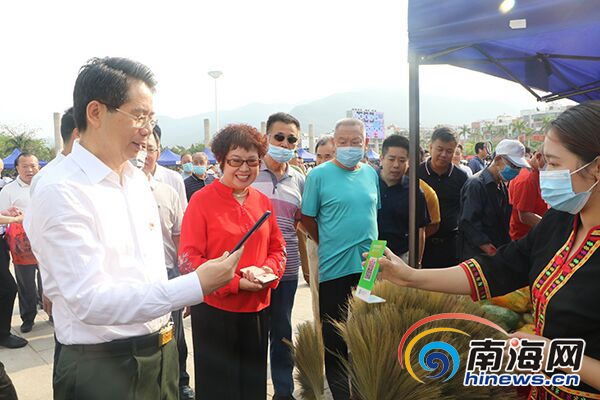 據(jù)統(tǒng)計,當(dāng)天,220戶貧困戶、5家扶貧企業(yè)和專業(yè)合作社,帶著黎錦黎陶、藤編、蜂蜜、霸王嶺山雞蛋、芒果、靈芝、黑米、糯米酒等71種農(nóng)產(chǎn)品亮相集市,現(xiàn)場銷售額約20萬元。