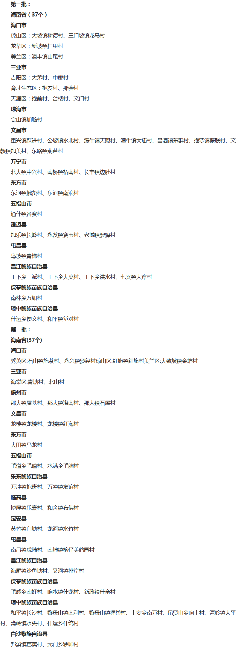 海南74個鄉村上榜第一批、第二批國家森林鄉村名單