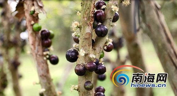 熱帶生態新果園里,被稱為“樹葡萄”的嘉寶果發出淡淡清香。南海網記者 李慶芳 攝