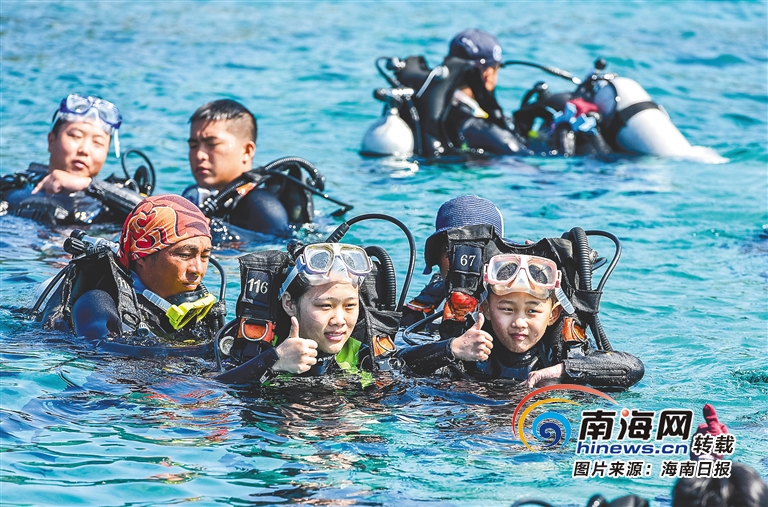 游客在陵水分界洲島旅游區體驗潛水項目。 武昊 攝