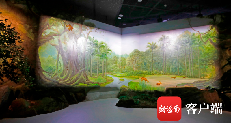 “誤入仙境——瓊崖歷史風俗巡禮(數字館)”以數字化手段還原黎族先民的生活、生產、交易場景,包括對歌擇偶、采藤、采香、漁獵、傳信等內容。記者 汪承賢 攝