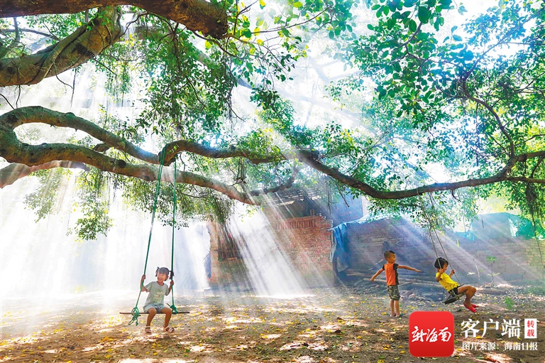 儋州:大樹底下好乘涼 娃娃嬉戲歡