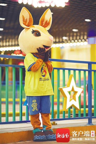 正在“營(yíng)業(yè)”的亞沙會(huì)吉祥物“亞亞”。 海南日?qǐng)?bào)記者 封爍 攝