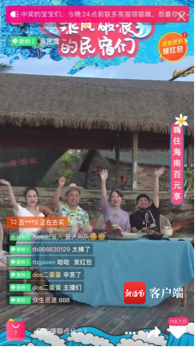 新海南客戶端、南海網、南國都市報5月25日消息(記者 蘇靚)為推廣海南的特色民宿,讓更多游客領略海島獨特的風土人情,日前,海南啟動“乘風破浪de民宿們”海南省特色民宿專場直播推介活動。短短2小時的淘寶直播,海南民宿銷售額突破200萬元,直播累計觀看人數超過50萬人次,互動量超180萬人次。