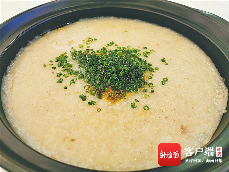 氣鼓魚粥是陵水新村疍家漁港的特色美食,用新鮮大米和氣鼓魚熬制而成的。