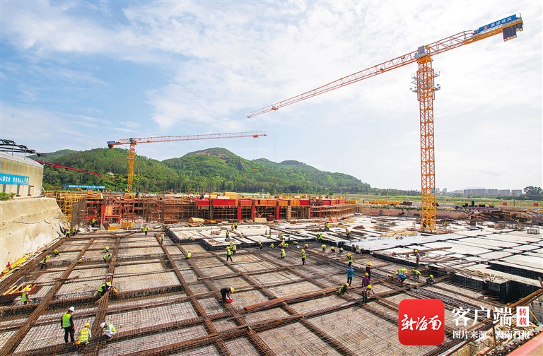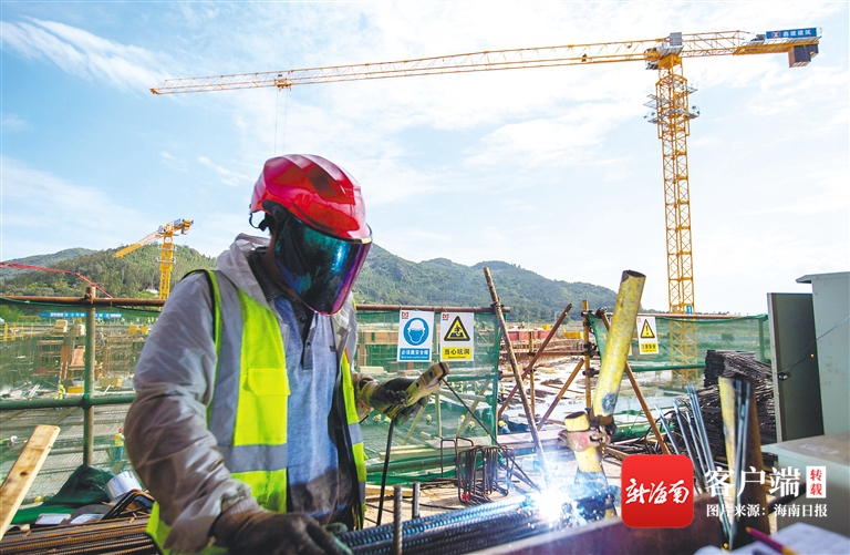 在國家南繁科研育種基地(安馬洋)配套服務區項目建設工地,施工人員正在加緊施工。武昊 攝