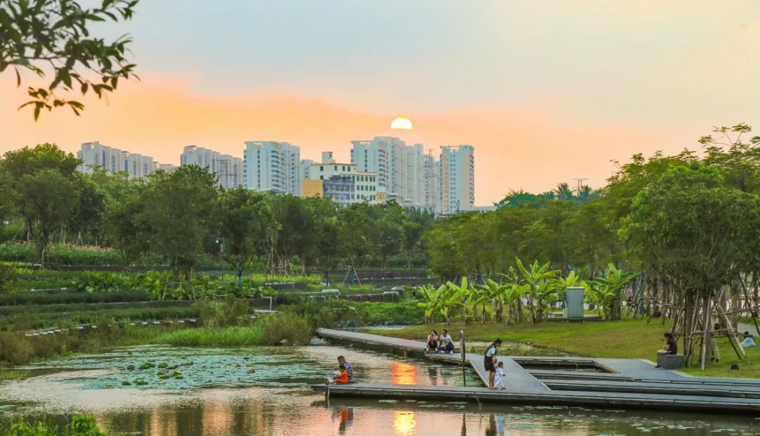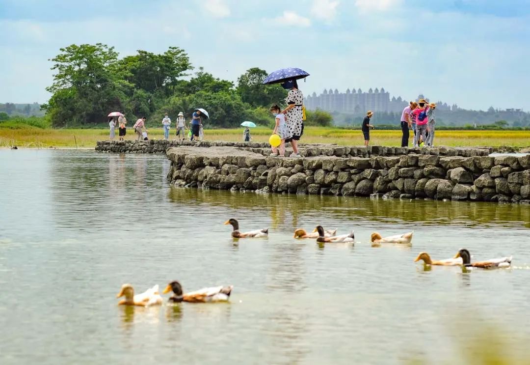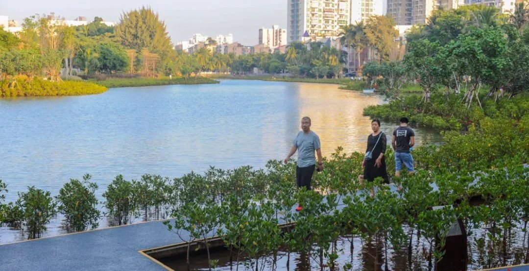 市民游客在鴨尾溪濕地生態公園漫步。海口日報記者 王程龍 攝
