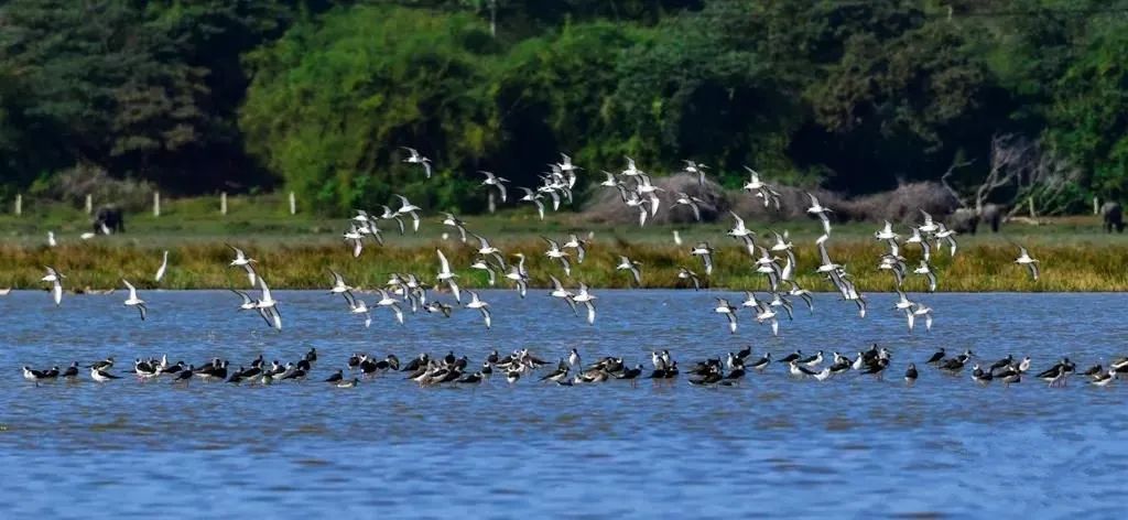 夏塘濕地群鳥高飛。??谌請笥浾?康登淋 攝