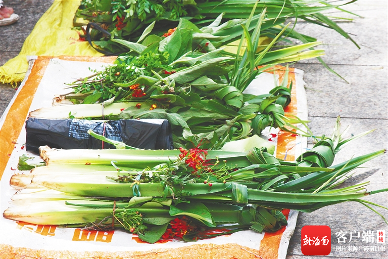端午節前,三亞農貿市場售賣的艾葉等。特約記者 孫清 攝