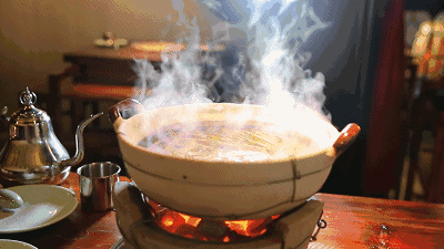 據說“打邊爐”一詞,源于廣東人對其特色火鍋的稱法 —“打甂爐”,后人偷懶寫成“邊”,漸漸地也就將錯就錯。