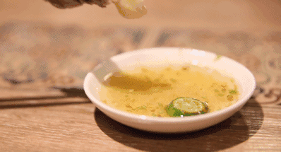 在海南,吃雞的蘸料可謂是絕無僅有,砂姜蔥白香菜梗先分別剁碎,然后以滾油熗一下,逼出香料的香味,再勾入醬油提味,最后擠入一兩顆新鮮青金桔,酸酸的桔汁瞬間把雞肉的甜度上升到新的高度,不得不佩服老祖宗的智慧,世間食材千萬種,居然可以做出和雞肉如此匹配的蘸料,人生巔峰不過如此!