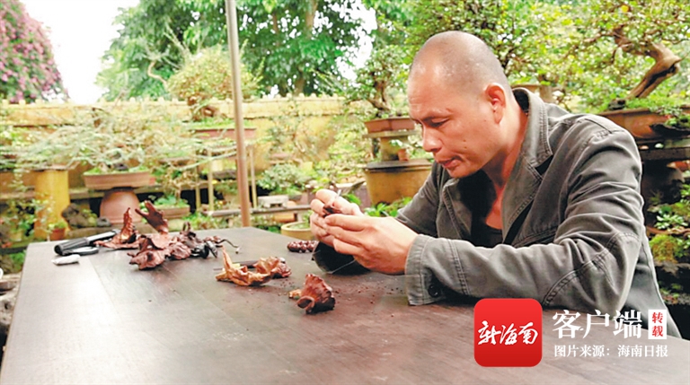 海南還有一位黃花梨根雕匠人名叫彭錦平,養(yǎng)花品茗,彭錦平的生活方式很純粹。