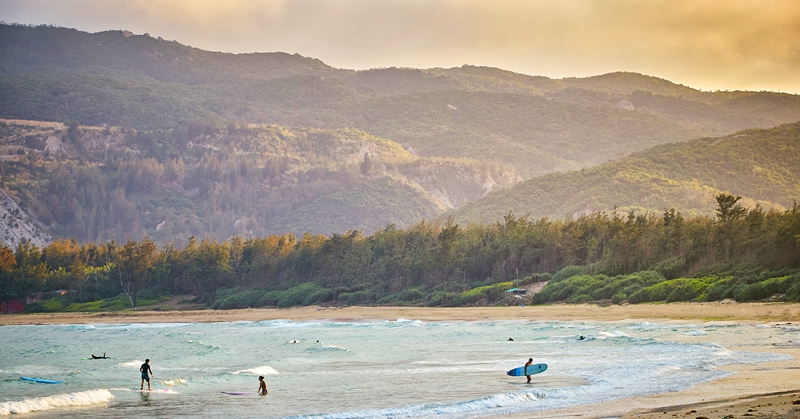 三亞后海村,不少沖浪愛好者到此練習沖浪。