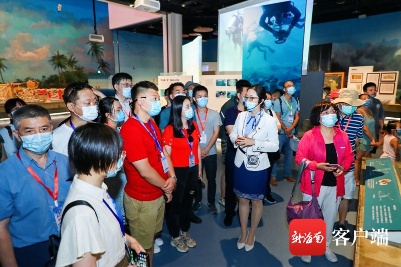 7月26日上午,“天然氧吧 健康海南”——2020全國抗疫英雄海南行暨海南自由貿易港全國重點網媒推介活動的抗疫英雄和網媒記者編輯們走進中國(海南)南海博物館。記者 李昊 攝