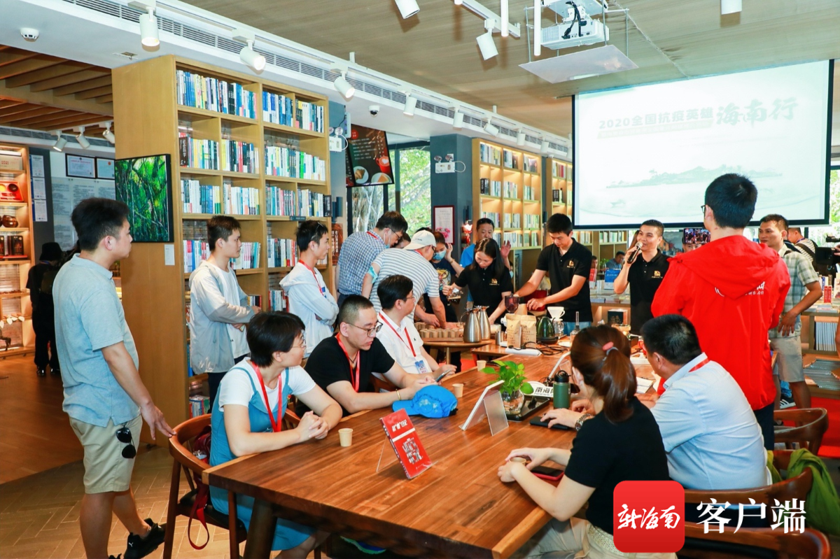 7月27日,參加“天然氧吧健康海南”——2020全國抗疫英雄海南行暨海南自由貿易港全國重點網媒推介活動的嘉賓們參觀萬寧石梅灣的鳳凰九里書屋。記者 李昊 攝