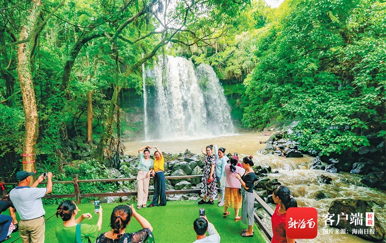 日前,位于臨高縣皇桐鎮的古銀瀑布吸引四面八方的游人觀賞游玩。