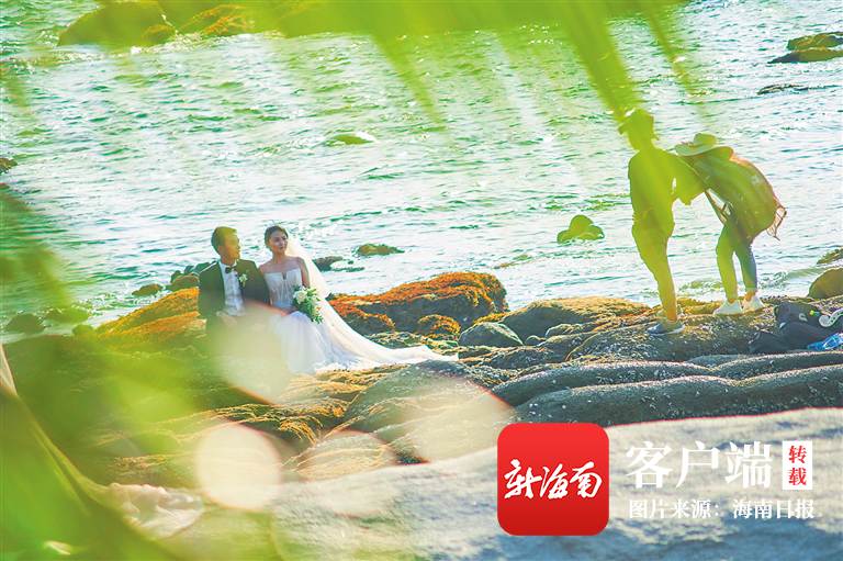 三亞大小洞天景區(qū),攝影師在為新人拍婚紗照。海南日?qǐng)?bào)記者 封爍 攝