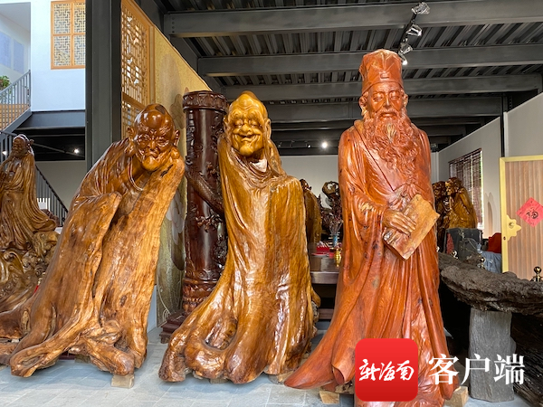 本次展示的木雕作品來自“國家一級技師”吳孔德。出生于1979年的吳孔德來自浙江麗水,從事木雕創作二十多年,擅于在傳統工藝的基礎上,不斷實踐探索、博采眾長,著力于自然美和藝術美的統一。開創了“壓縮變形”“空雕”等新技法。在木雕技藝上,他深挖海南文化藝術,通過不斷的技術改造,攻克難關,創作出屢獲國內外大獎的高端藝術作品,并向國際推廣展示海南本土藝術特色。