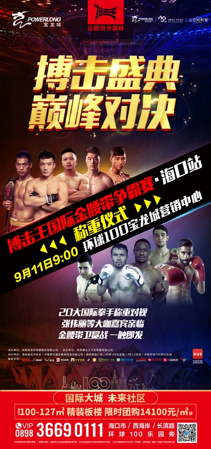 搏擊王金腰帶爭霸賽??谡举惽胺Q重儀式將在環(huán)球100寶龍城營銷中心舉辦。