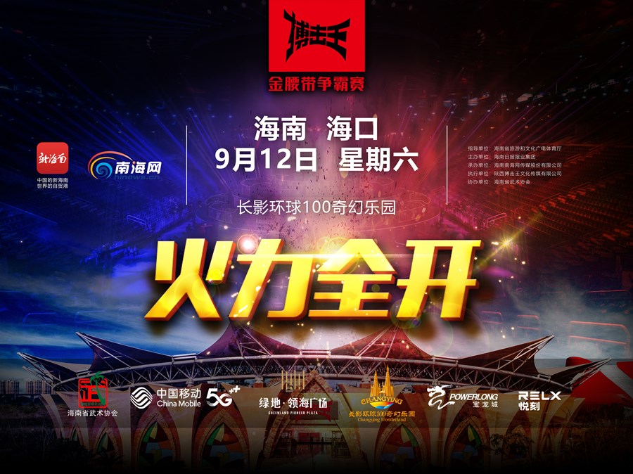 本次活動由海南省旅游和文化廣電體育廳指導(dǎo),海南日報(bào)報(bào)業(yè)集團(tuán)主辦,南海網(wǎng)承辦,陜西搏擊王文化傳媒有限公司執(zhí)行,獲得了海南省武術(shù)協(xié)會、中國移動通信集團(tuán)海南有限公司、綠地領(lǐng)海廣場、環(huán)球100寶龍城、長影環(huán)球100奇幻樂園、RELX悅刻的大力支持。本次賽事將有全球150國直播以及國內(nèi)30多家電視臺轉(zhuǎn)播。中國移動將為本次賽事提供穩(wěn)定高清的5G+4K直播技術(shù)。