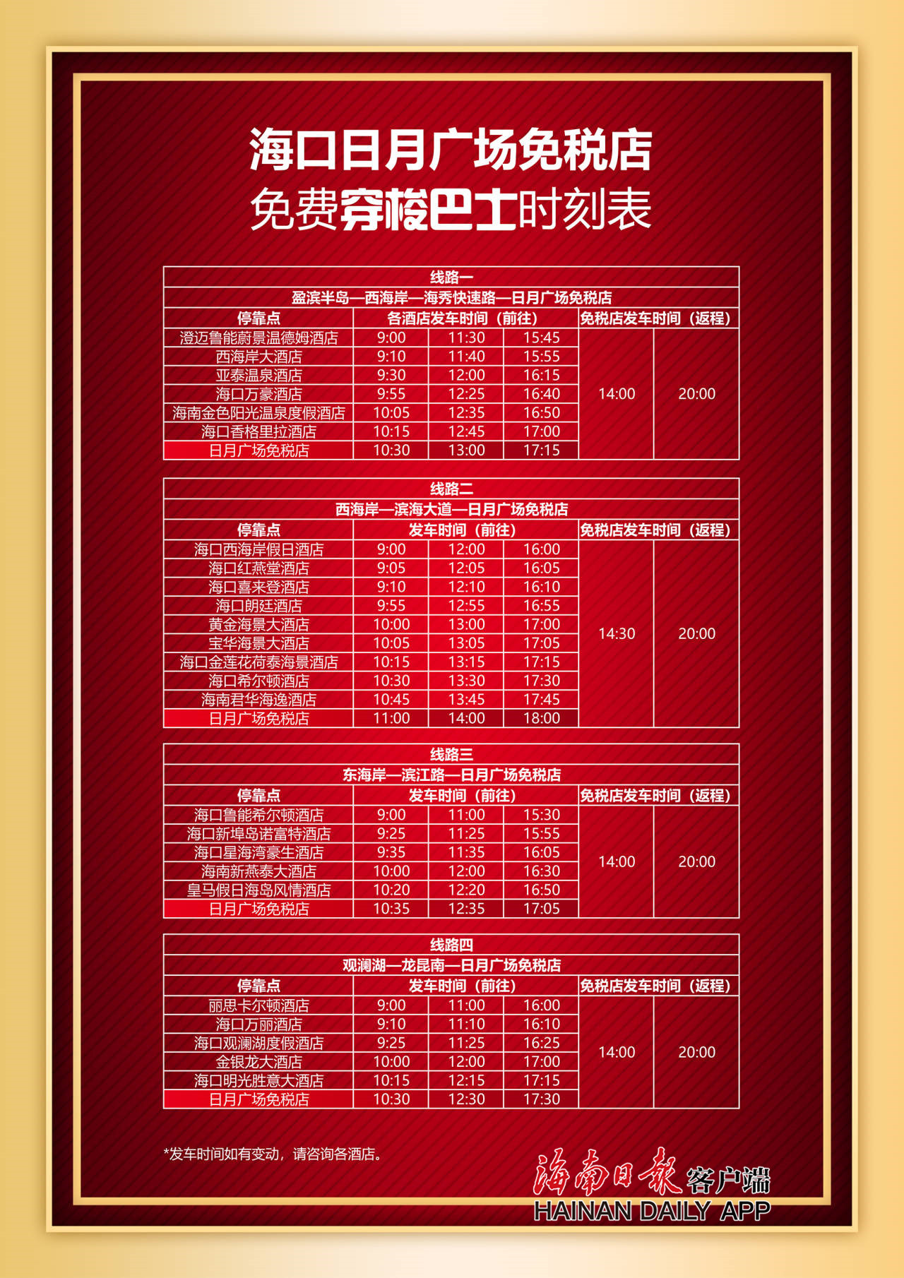 海口“免稅購物專線”免費穿梭巴士要開通啦!