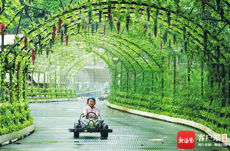 游客在海南檳榔谷黎苗文化旅游區(qū)體驗(yàn)田野卡丁車項(xiàng)目。