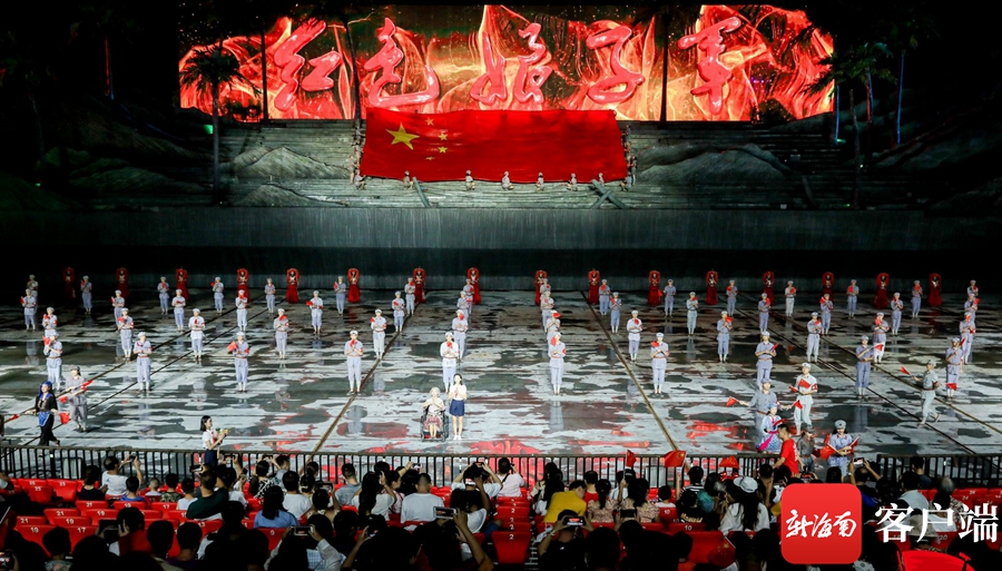 紅色娘子軍演藝公園內紅旗飄揚,使得整個園區洋溢在紅色的海洋中,園區內持續開展豐富多彩的體驗活動,讓游客在園區隨時體驗到歡樂的氛圍?!笆⑹垒x煌·與你共舞”“盛世華誕·與你同慶”“盛世佳節·明月共賞”“盛世足跡·闊步前行”“紅歌嘹亮·旗幟飄揚”等精彩活動,讓游客重溫紅色經典。伴著歡快的音樂,身著紅軍服或民族特色服飾的演員們跳起了熱情洋溢的舞蹈,并與游客們親切合影,現場一片其樂融融的歡快景象。英姿颯爽的大刀舞、民族特色的竹竿舞等紅色歌舞匯演引得圍觀游客們一陣陣喝彩。通過對演藝節目的改版升級,大型椰海實景演出·紅色娘子軍,采用全息激光投影、裸眼3D、三維爆破、可升降冰屏等舞臺科技,讓“躺”著的歷史“站”起來,讓紅色精神“活”起來,游客和演員融為一體,共同沉浸在紅色海洋中,一起表達對祖國的熱愛。