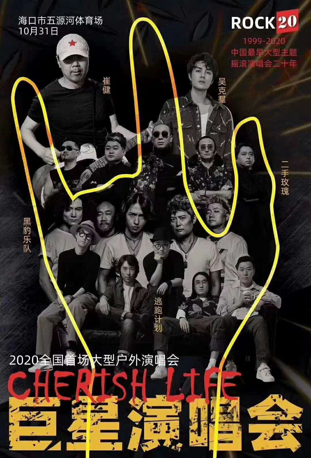 新海南客戶端、南海網、南國都市報10月19日消息(記者 黨朝峰)由海口市旅游和文化廣電體育局支持指導,海南省旅游飯店業協會、海口市酒店協會協辦的ROCK20 Cherish life巨星演唱會,將于2020年10月31日在??谑形逶春芋w育場盛大舉行!