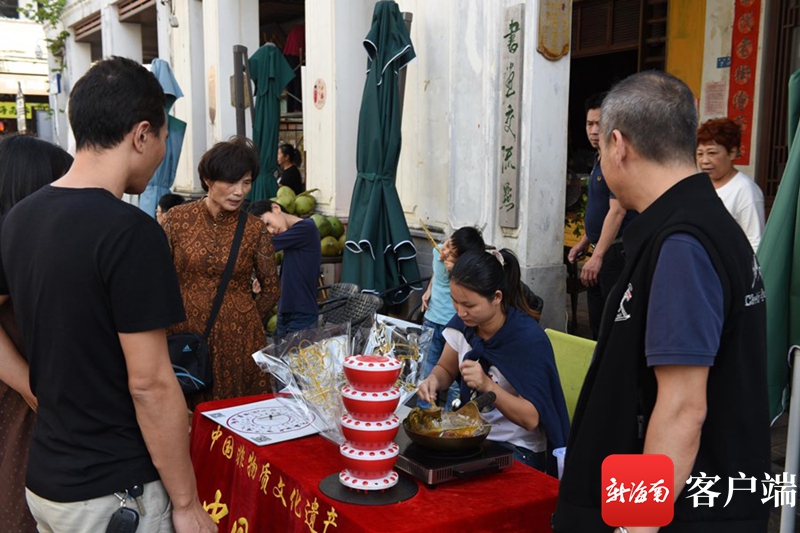 不少騎樓老街的店鋪商家?guī)е髯缘恼信粕唐穪淼浆F(xiàn)場,向市民游客做品牌推介;從興隆小鎮(zhèn)來的南洋風(fēng)味美食打開了大家的味蕾:斑斕七層糕、娘惹雙色粽、印尼千層糕、蕉葉糯米條、椰絲木薯球等特色小吃讓人食指大動(dòng)。