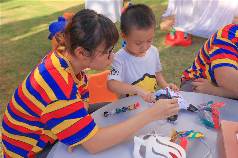 10月31下午,小賓客們前往酒店G層的BBQ草坪,開始對純白色的面具和南瓜進行創作。在家長的陪同和工作人員的指導下小賓客們都發揮了自己天馬行空的想象力,獨一無二的萬圣面具和南瓜燈就此完成。貼心的小賓客還會自己親手制作的面具和南瓜燈送給父母。